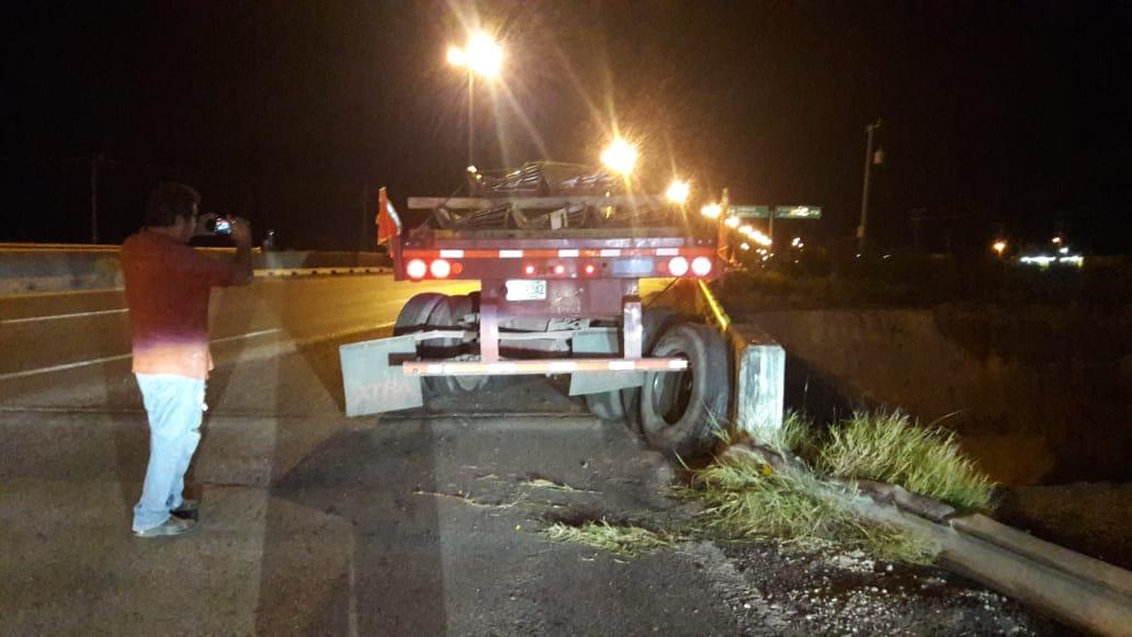En el percance no se reportaron lesionados, solo los daños materiales en el tractocamión Freightliner modelo 2013, propiedad de la Empresa de transportes GASA.