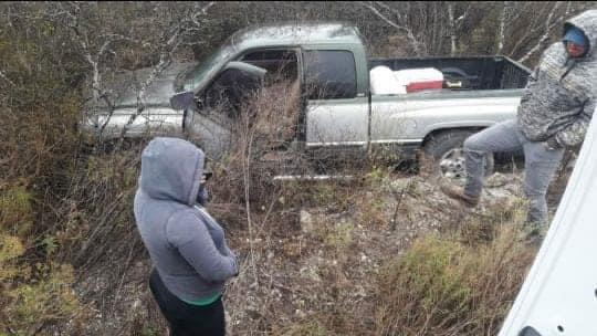 Raymundo Campos|Múzquiz, Coah.- Una camioneta Pick-Up, donde viajaba una familia quedó incrustada entre los matorrales, luego de evadir el choque con otra unidad que derrapó al tomar una curva.