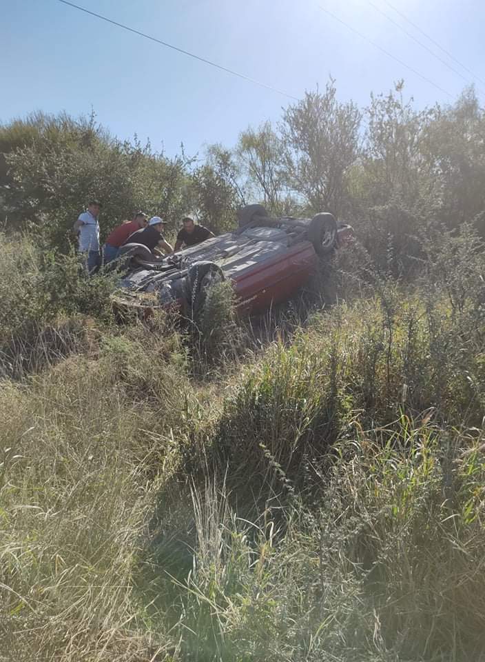 Luis Manzano | Allende Coah.- Paramédicos de bomberos Allende atendieron a una persona originaria del municipio de Sabinas, la cual volcó en su vehículo, cuando circulaba por la carretera 57, pero al pasar por la congregación Río Bravo, municipio de Allende, perdió el control de su unidad automotriz la cual volcó y terminó con las cuatro ruedas hacía arriba.