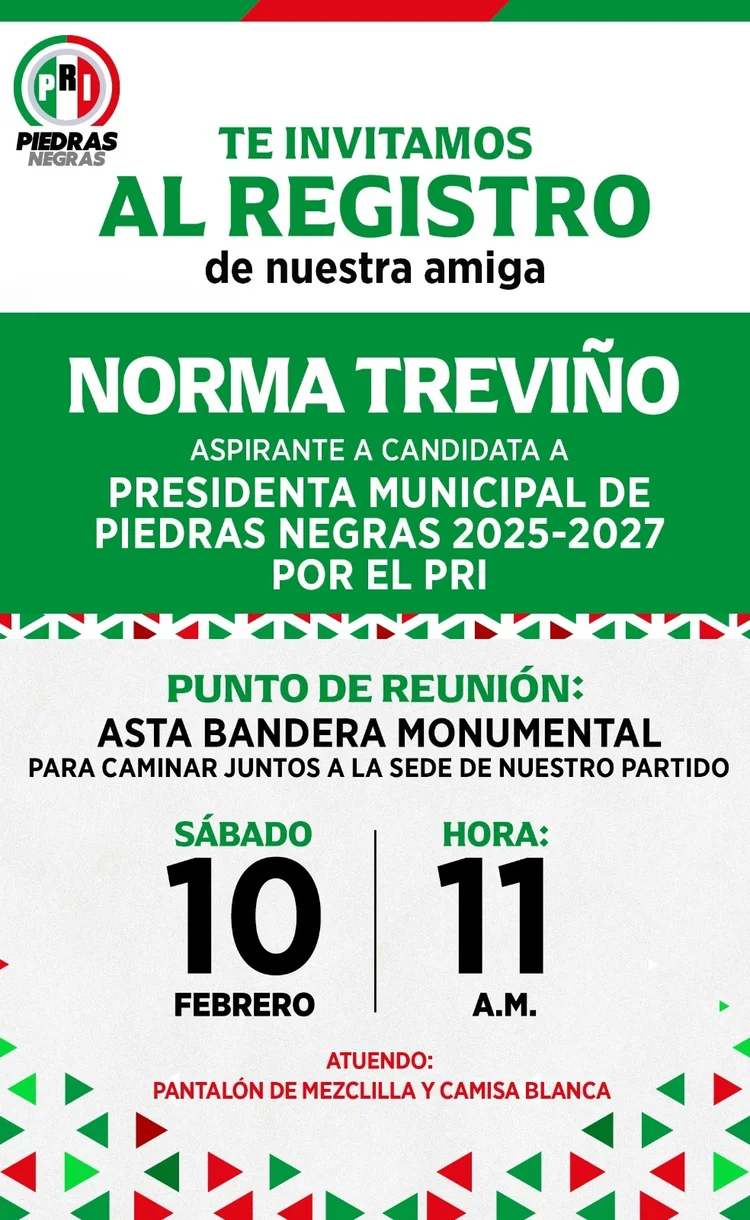 Ricardo Bueno | Piedras Negras, Coah.- Este sábado 10 de febrero Norma Treviño entregará la documentación para registrarse como precandidata a la Presidencia Municipal.