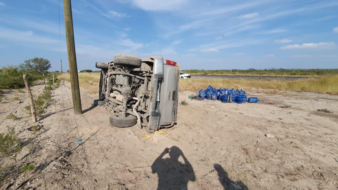 La camioneta Chevrolet modelo 2009, transportaba galones con agua purificada, los cuales quedaron esparcidos a la orilla de la carretera.