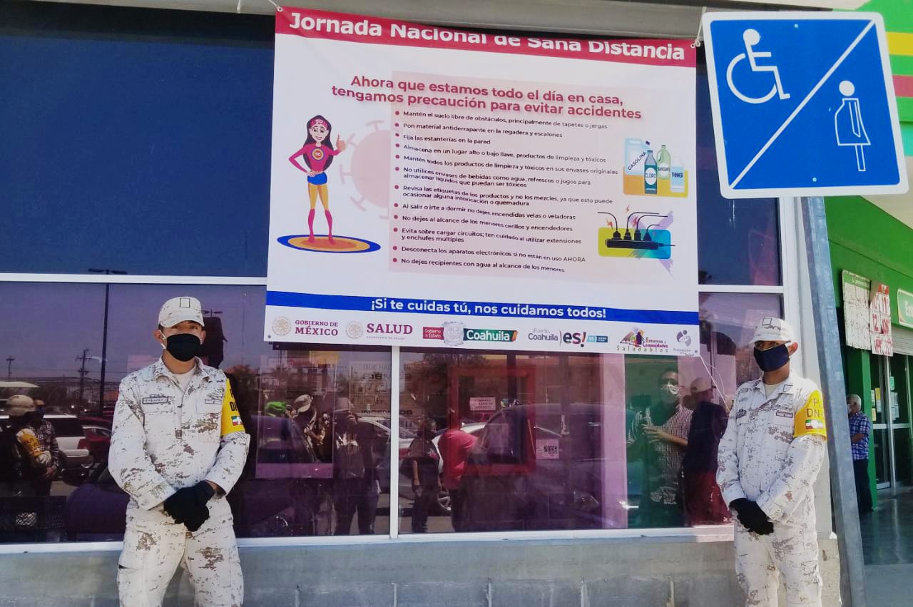 Lucía Carrillo | Piedras Negras, Coah.- Con la colocación de distintos carteles en diferentes puntos de la ciudad, como centros comerciales y los puentes internacionales, elementos de la Secretaria de la Defensa Nacional inicio la Jornada Nacional de Sana Distancia.