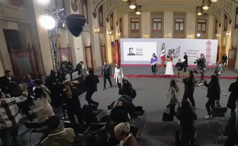 La Presidenta Claudia Sheinbaum tuvo que interrumpir su respuesta a los representantes de los medios de comunicación luego que se activó la alerta sísmica la mañana de este 2 de enero.