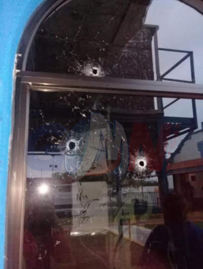 Los impactos de bala quedaron incrustados en los ventanales de una maquiladora que se encuentra aledaña al lugar del ataque.