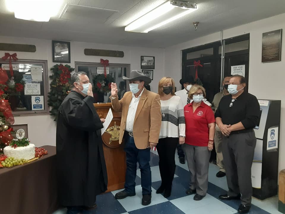 Ricardo Bueno |Piedras Negras, Coah.- Este lunes por la mañana el sheriff del condado de Maverick, Tom Schmberber tomó juramente al cargo ante el juez David Saucedo, evento que se realizó en las instalaciones del centro de detención Tom Bowls, este será su tercer periodo el cual tendrá una duración de cuatro años, en el evento se contó con carcelarios, diputados y familiares del alguacil.