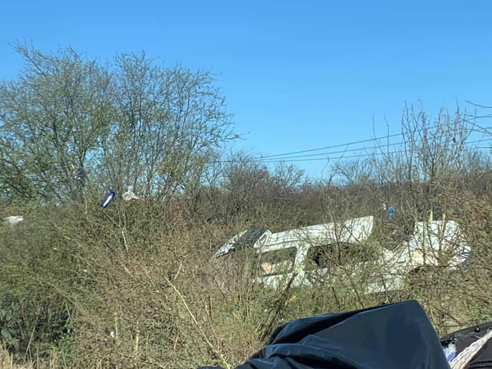 La unidad quedó destrozada sobre los matorrales que se encuentran en la orilla de la vialidad.