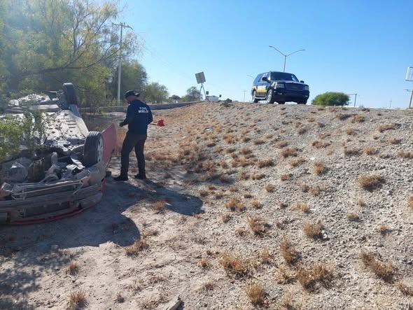 Morelos, Coahuila.- Una mujer resultó lesionada luego de volcar su automóvil sobre la carretera Morelos–Nava, a la altura de la curva conocida como la antigua “EckoDisco”.