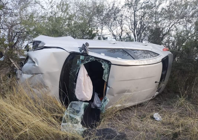 Luis Manzano | Muzquiz, Coah.- Cuantiosos daños materiales dejó una aparatosa volcadura en la carretera Palaú- Múzquiz, atendida por Seguridad Pública Municipal.