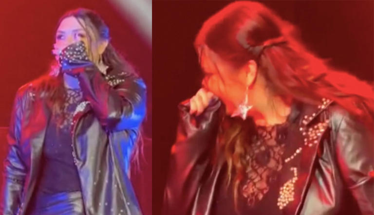 Mientras esto ocurría, no paraba de mirar hacia las personas que se encontraban detrás del escenario como si estuviera tratando de pedir ayuda para salir del escenario en la siguiente canción.